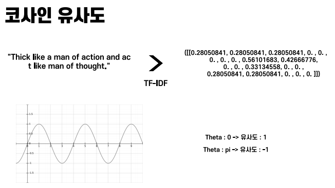 • 벡터 표현 사이의 각도에 대한 코사인 값을 사용한다.
