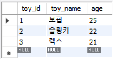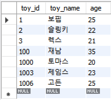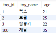 toy_id는 자동 생성된 것을 볼 수 있다.