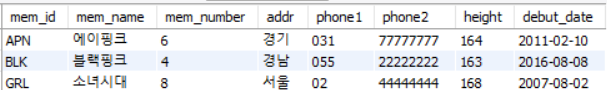 WHERE height >= 164 #오류 발생(SELECT 절 순서 지킬 것)