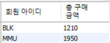 SELECT mem_id '회원 아이디', SUM(price*amount) '총 구매 금액'