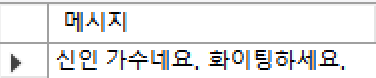 SELECT '신인 가수네요. 화이팅하세요.' AS '메시지' ;