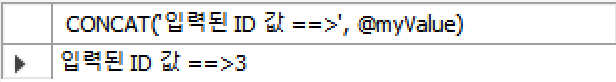 SELECT CONCAT('입력된 ID 값 ==>', @myValue) ;