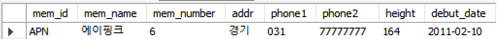 SELECT mem_id, mem_name, calcYearFunc(YEAR(debut_date)) AS '활동 기간'
