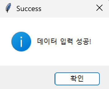 messagebox.showinfo('Success', '데이터 입력 성공!')