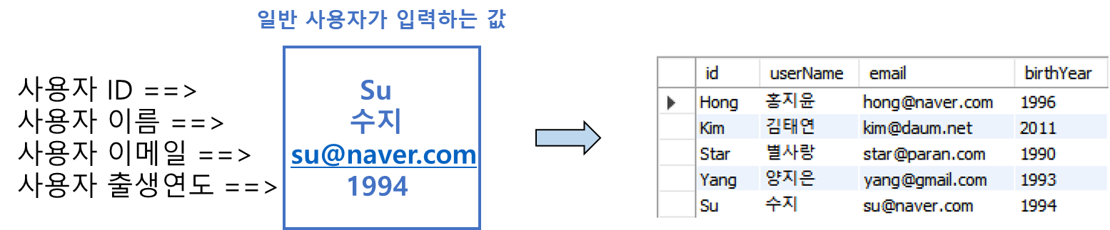 cur.execute("INSERT INTO userTable VALUES('Star','별사랑','star@paran.com','1990')")