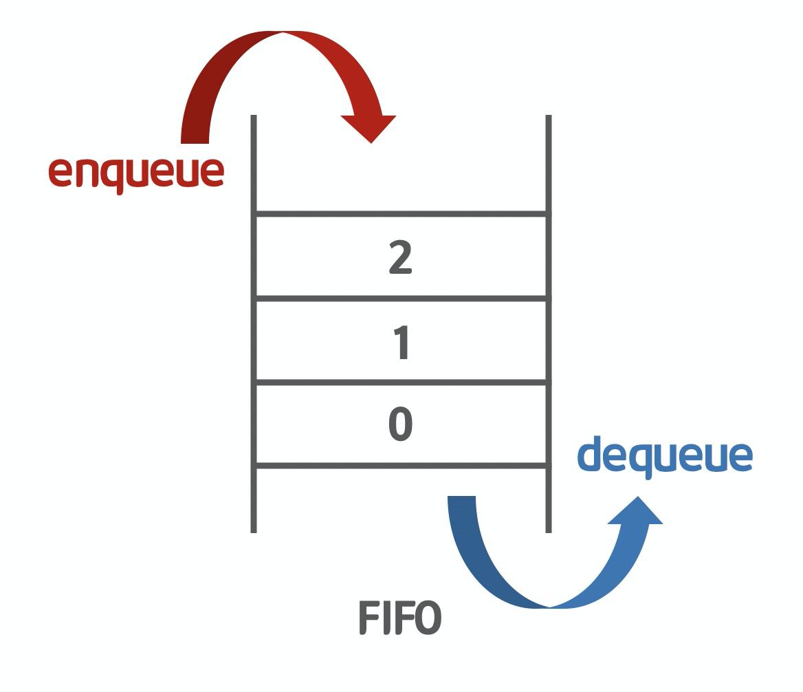 큐는 줄 혹은 줄을 서서 기다리는 것을 의미한다. 따라서, 먼저 온 사람이 먼저 업무를 보는 것과 같이 선입선출(FIFO, First-In-First-Out)의 구조를 띈다.