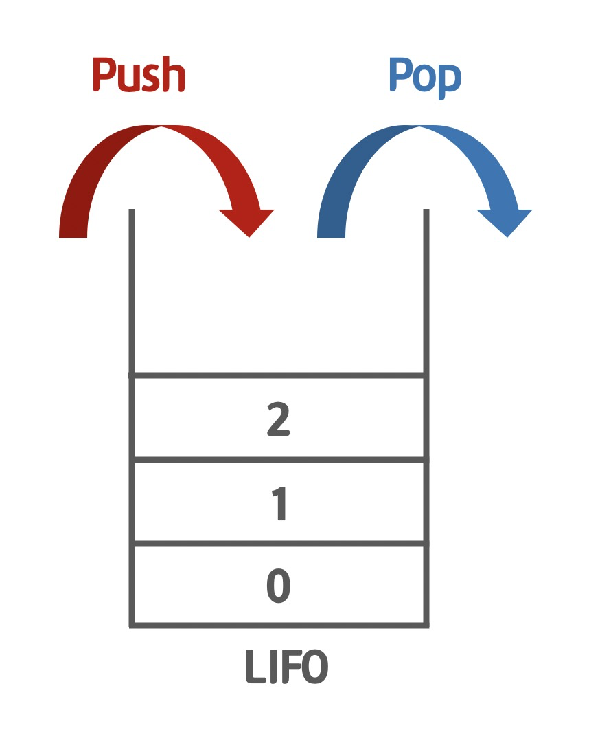 - 이러한 구조를 후입선출(LIFO, Last-In-First-Out)구조라고 한다.